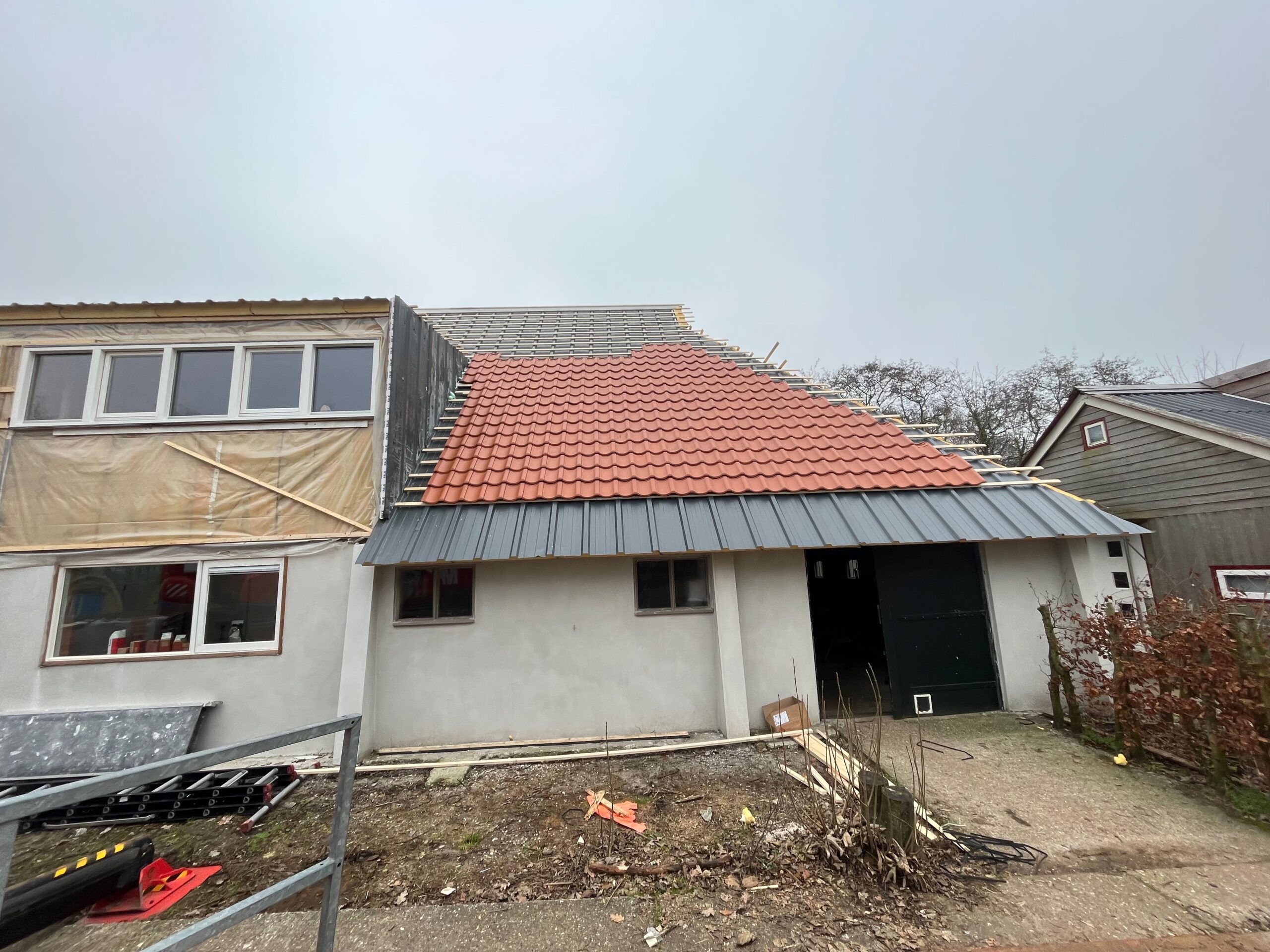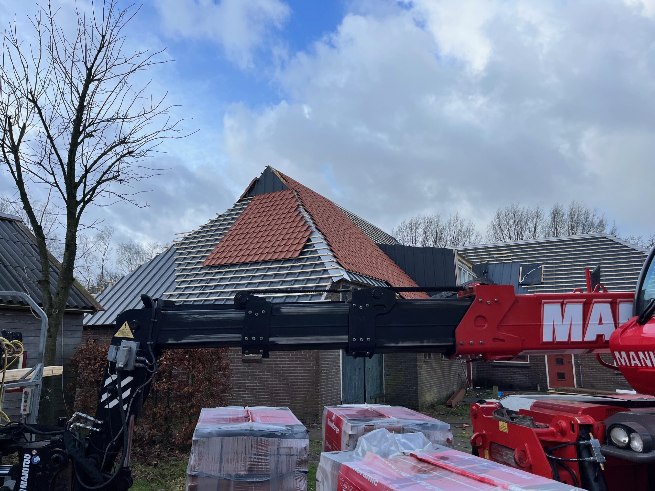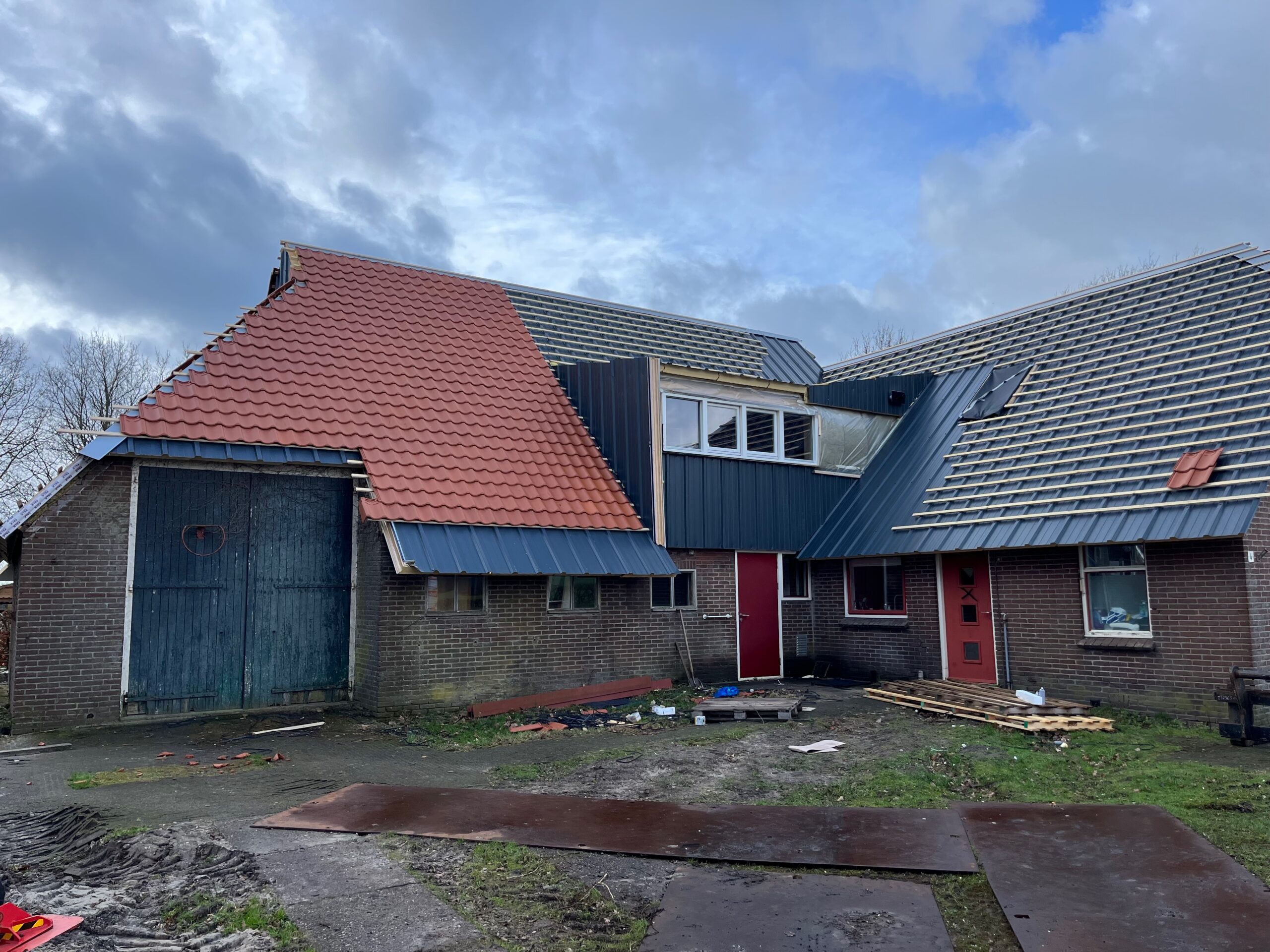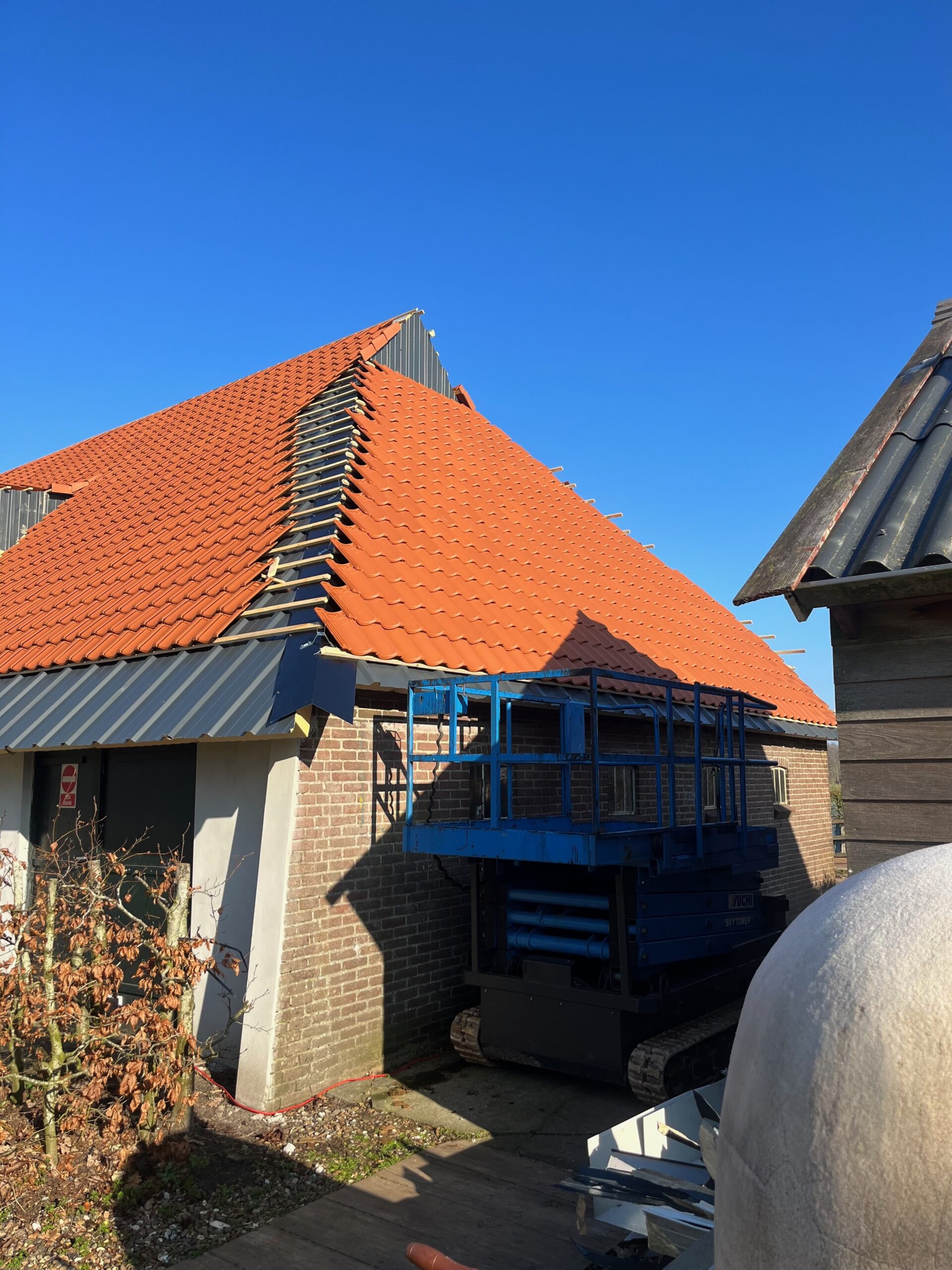 In Haskerdijken is een karakteristieke boerderij voorzien van een complete dakrenovatie. Het bestaande dak vertoonde slijtage en voldeed niet meer aan de huidige eisen voor veiligheid en isolatie. Tijdens het project zijn de oude pannen verwijderd, het dakbeschot hersteld en geïsoleerd, en is de constructie waar nodig verstevigd.