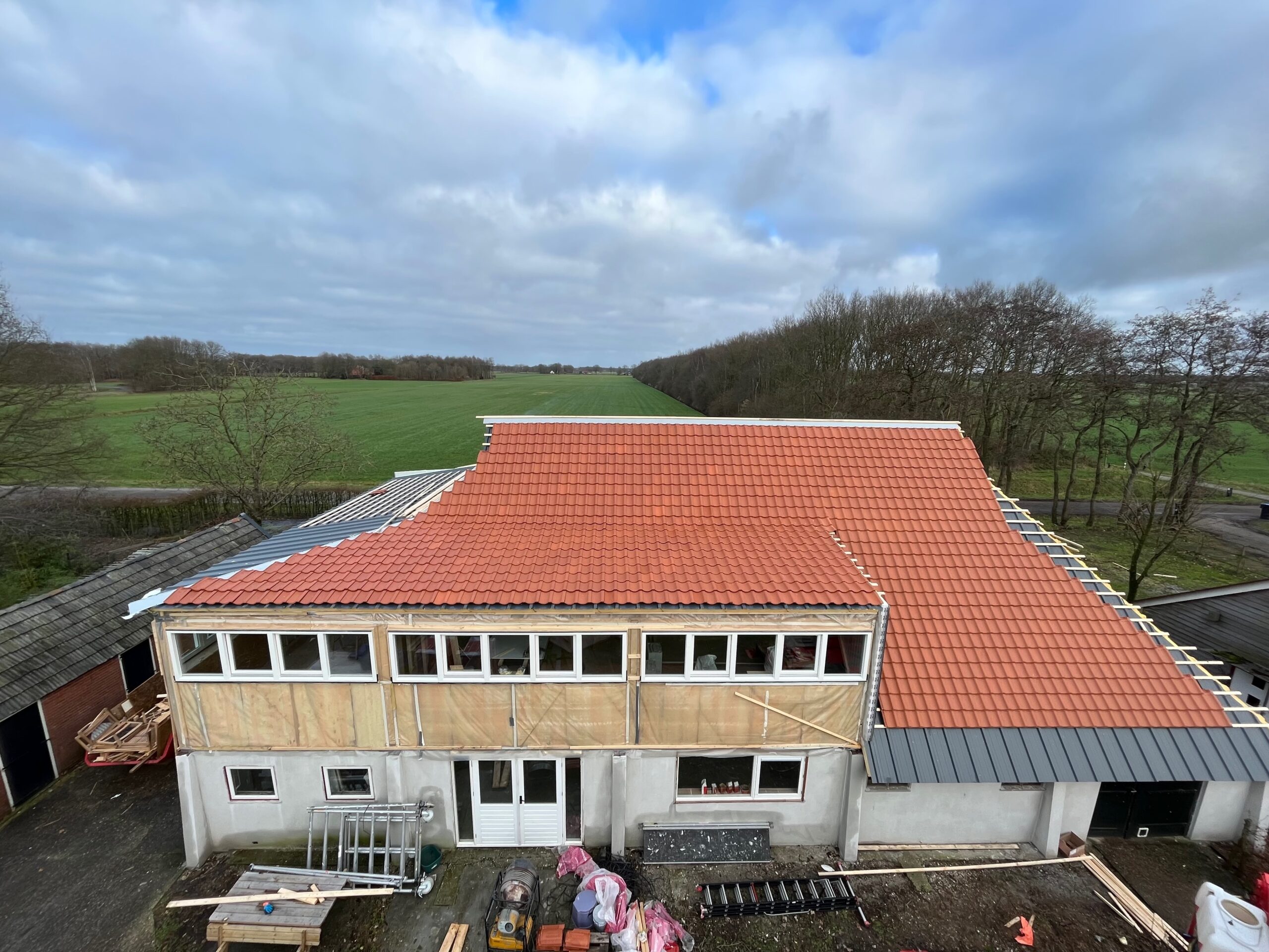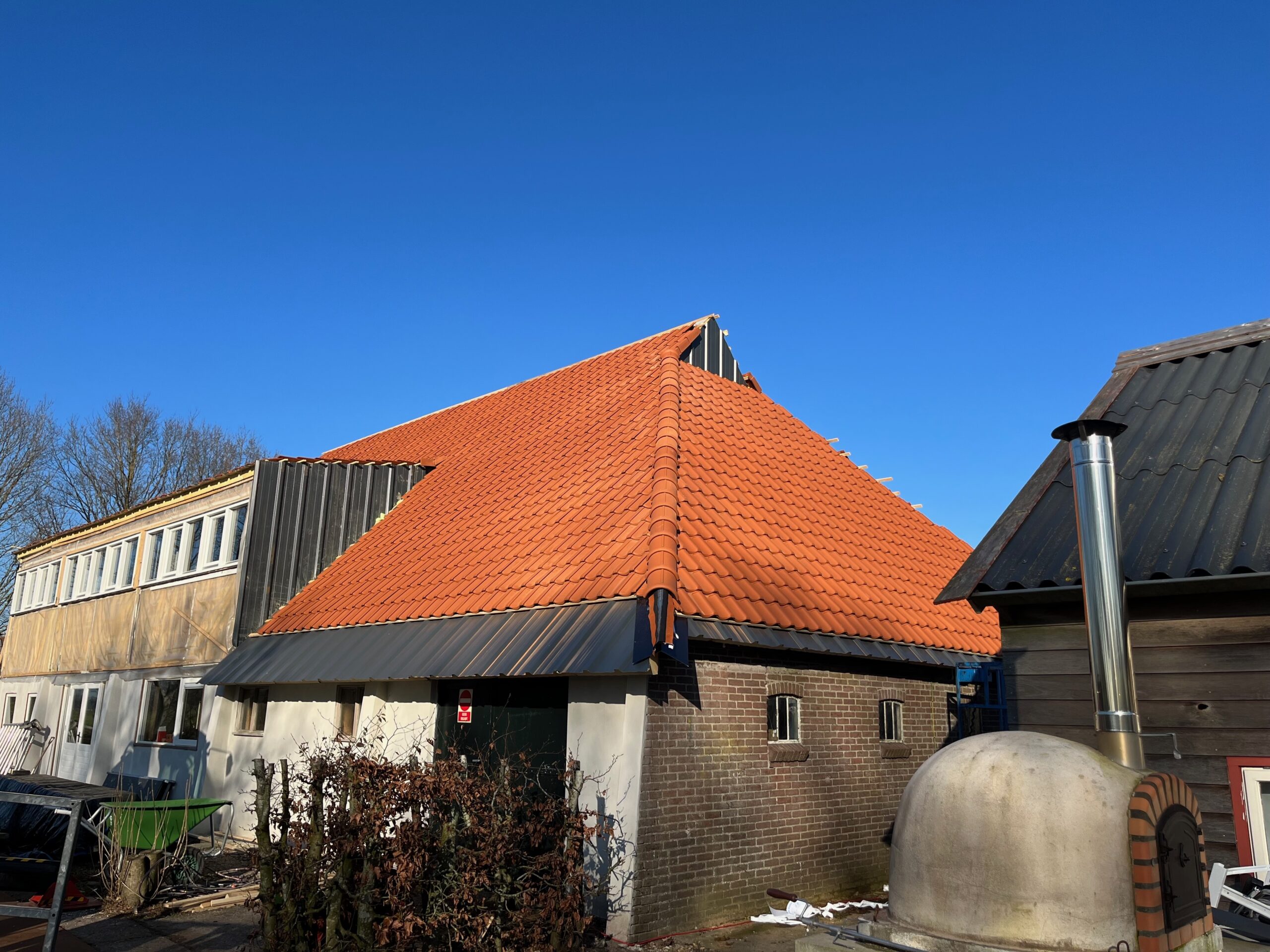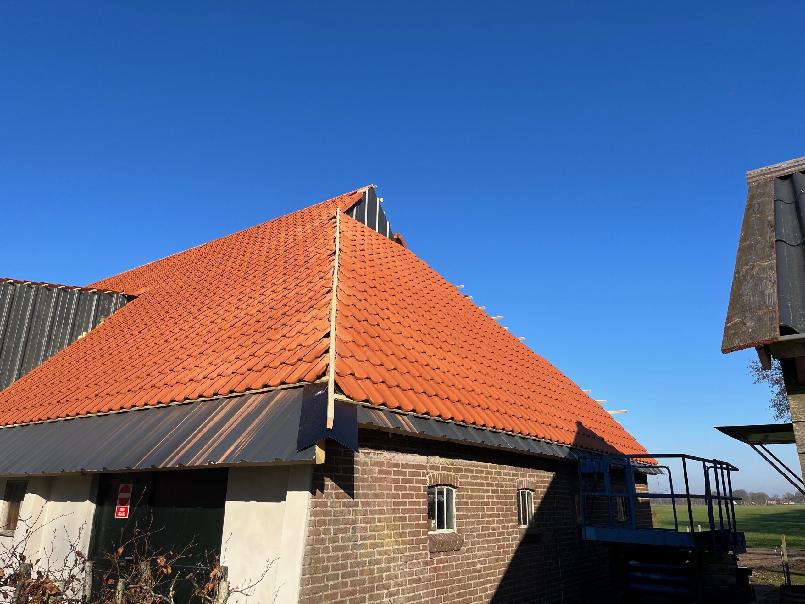 Om de authentieke uitstraling van de boerderij te behouden, is gekozen voor duurzame dakpannen die passen bij het historische karakter van het gebouw. Dankzij de renovatie is de boerderij niet alleen beter beschermd tegen weer en wind, maar ook energiezuiniger en comfortabeler voor de toekomst.