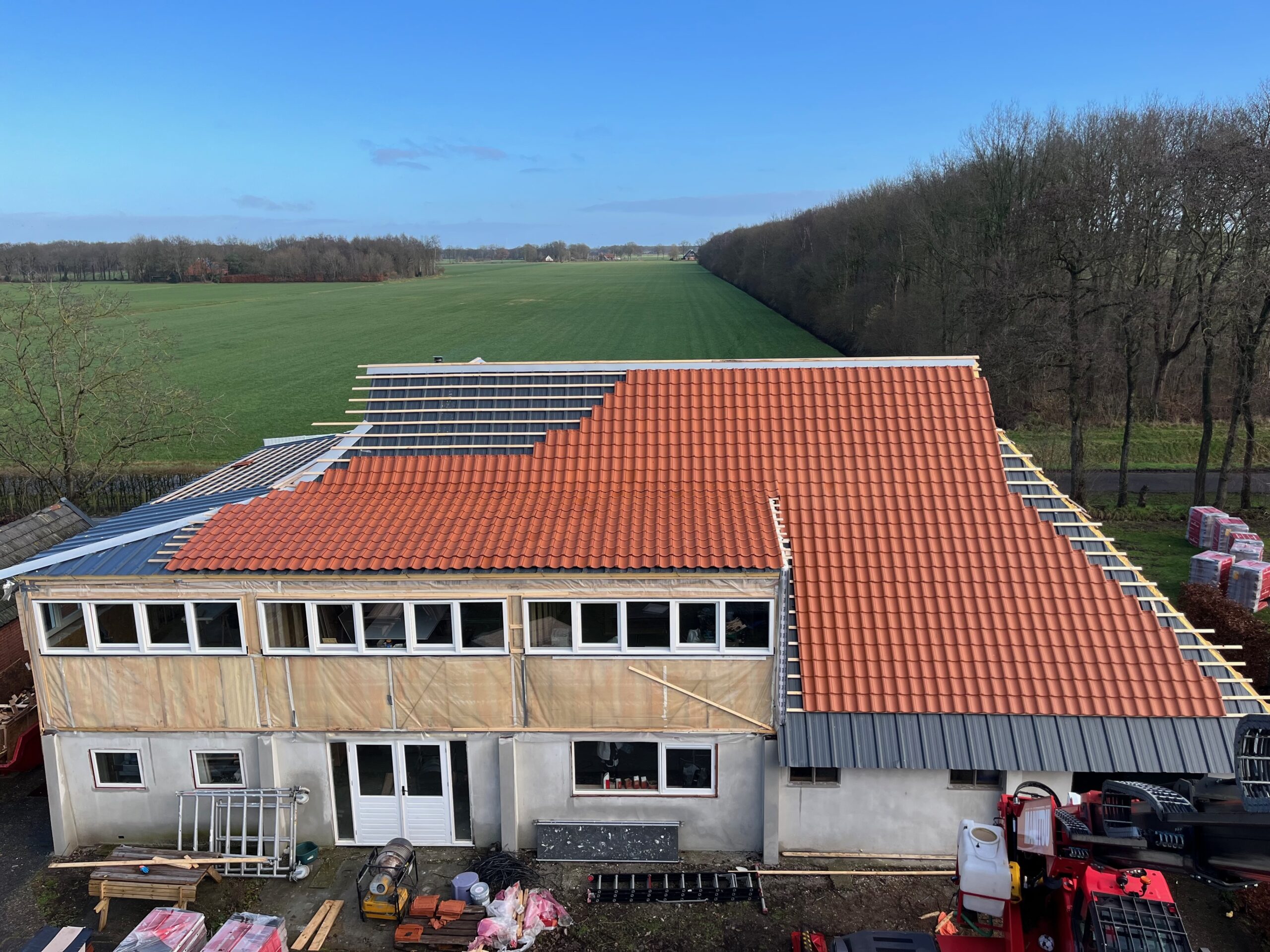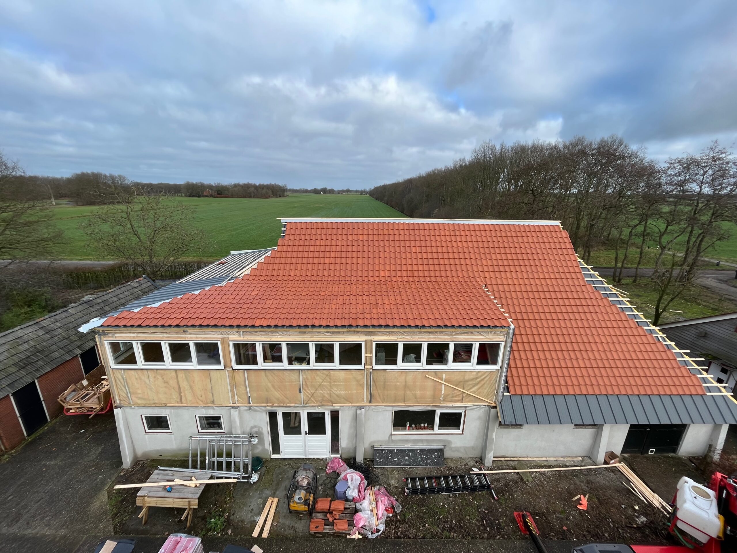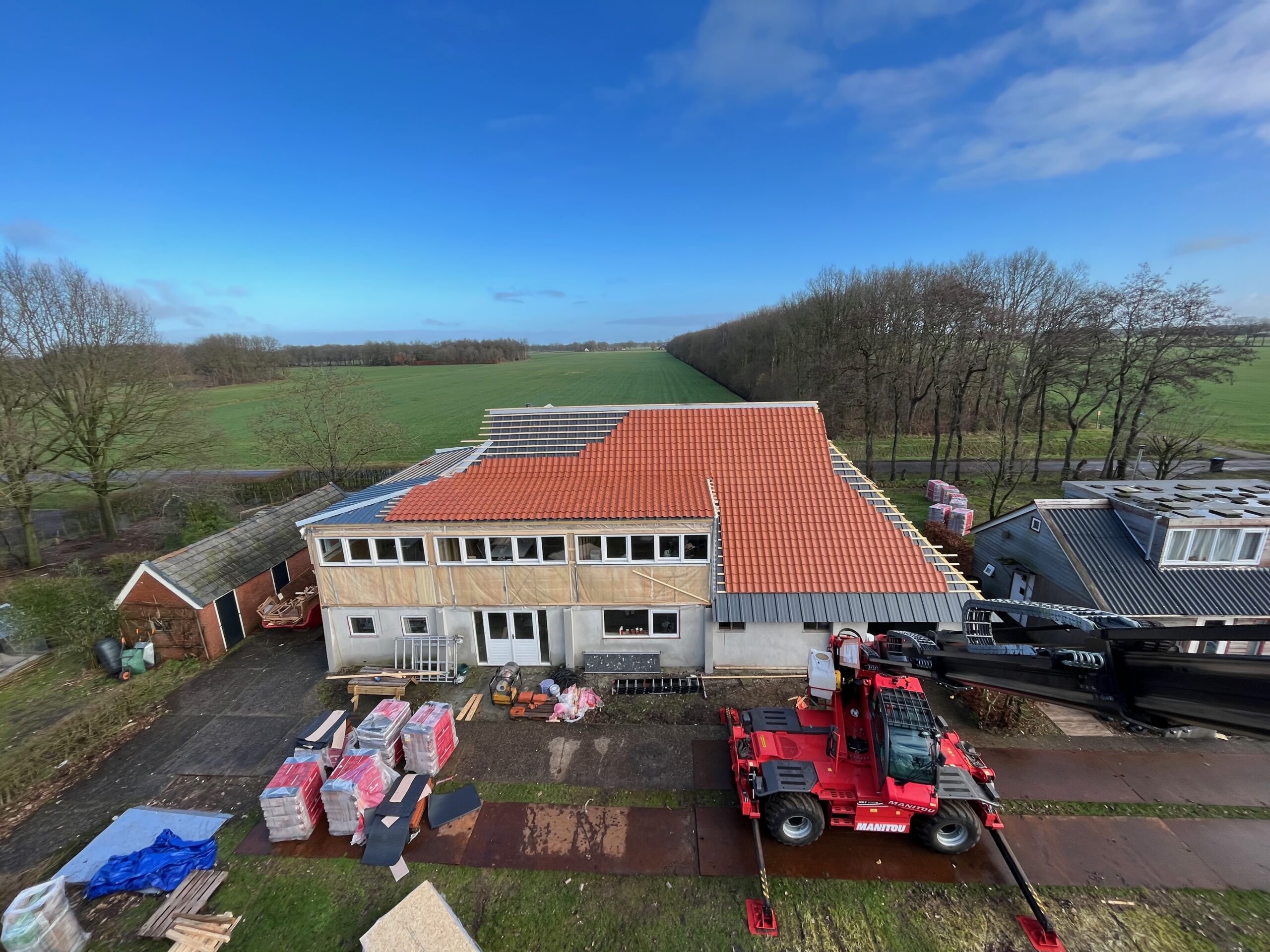 Om de authentieke uitstraling van de boerderij te behouden, is gekozen voor duurzame dakpannen die passen bij het historische karakter van het gebouw. Dankzij de renovatie is de boerderij niet alleen beter beschermd tegen weer en wind, maar ook energiezuiniger en comfortabeler voor de toekomst.